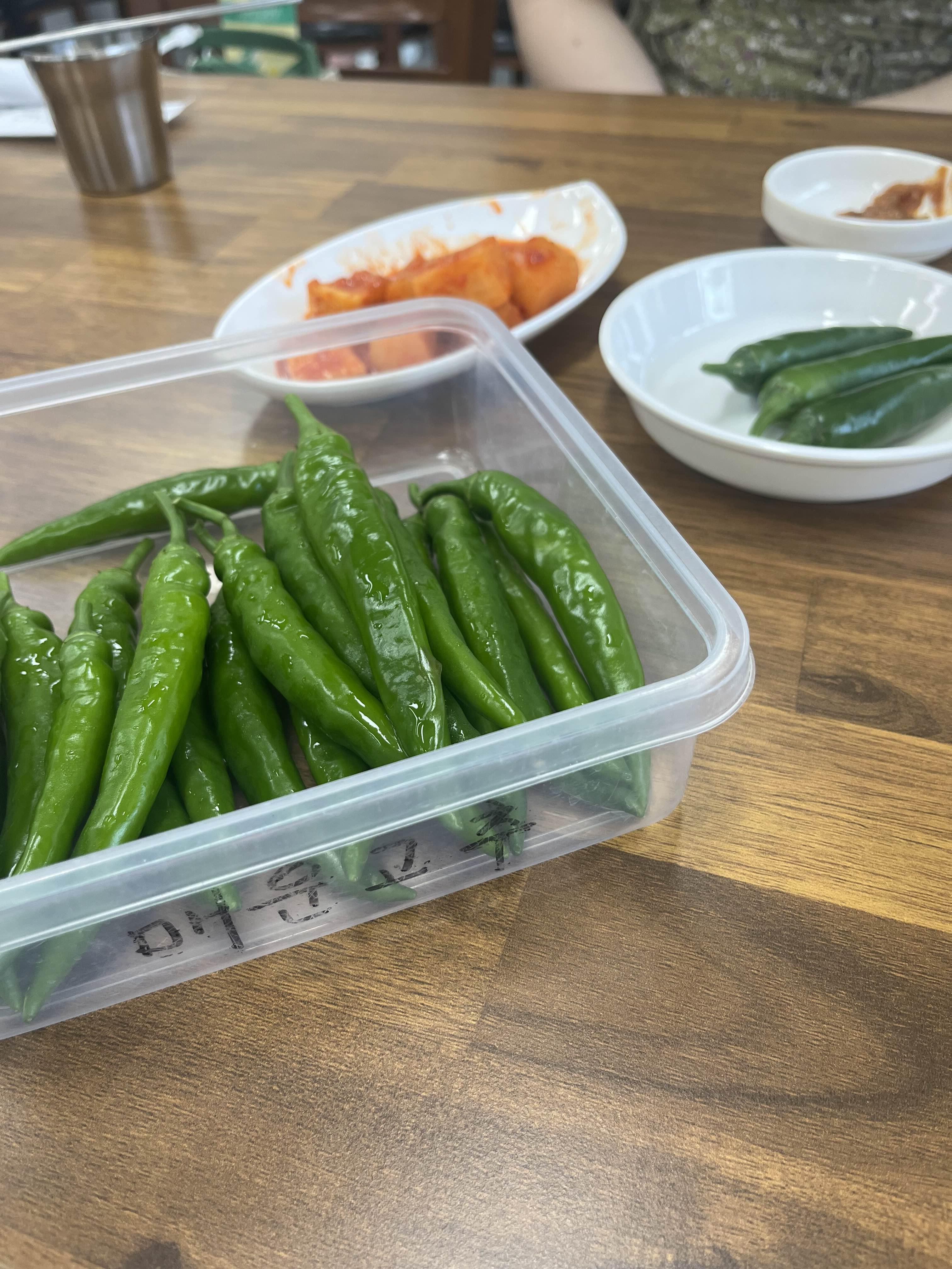 테이블에 기본으로 매운고추도 있다.