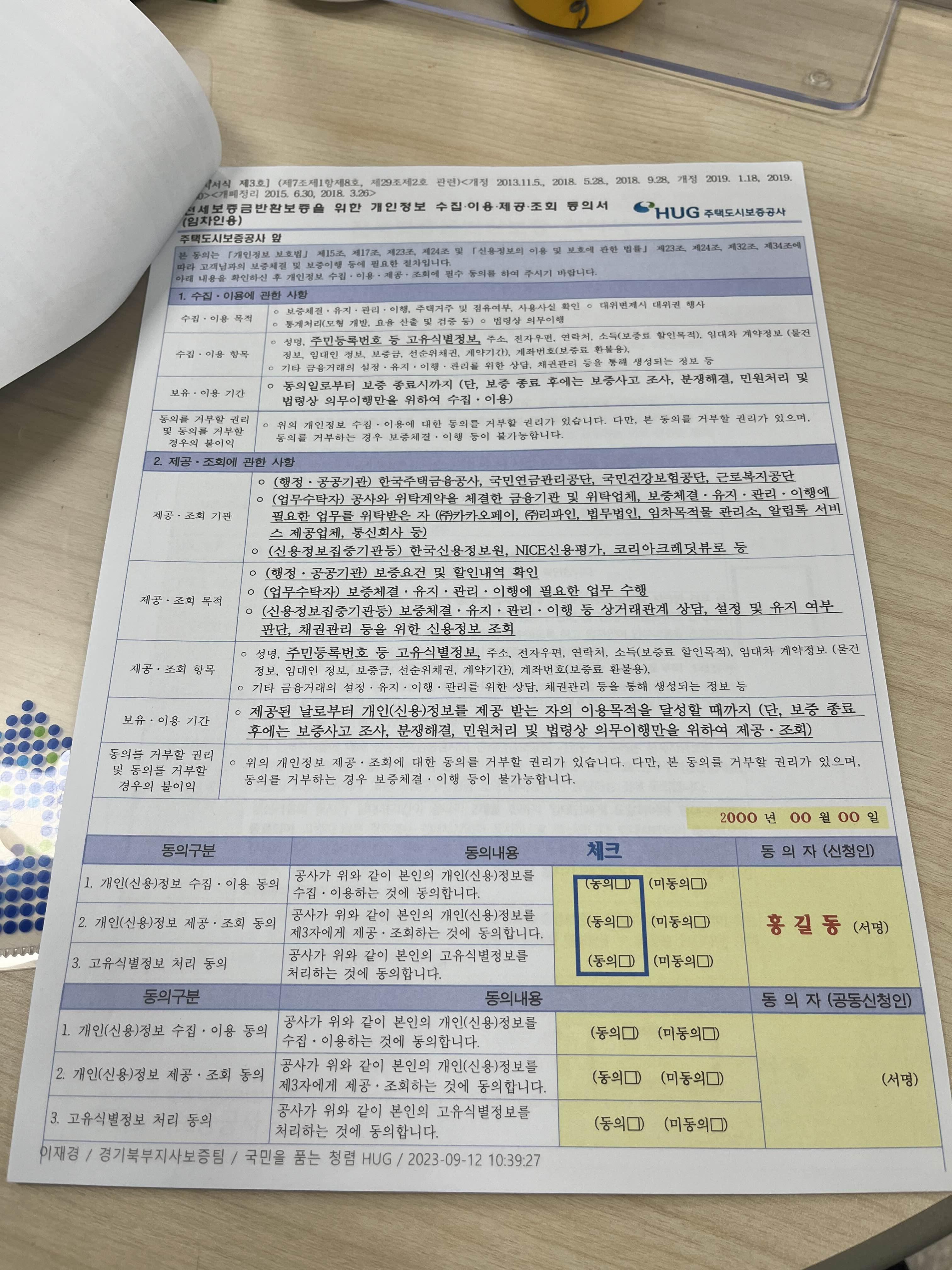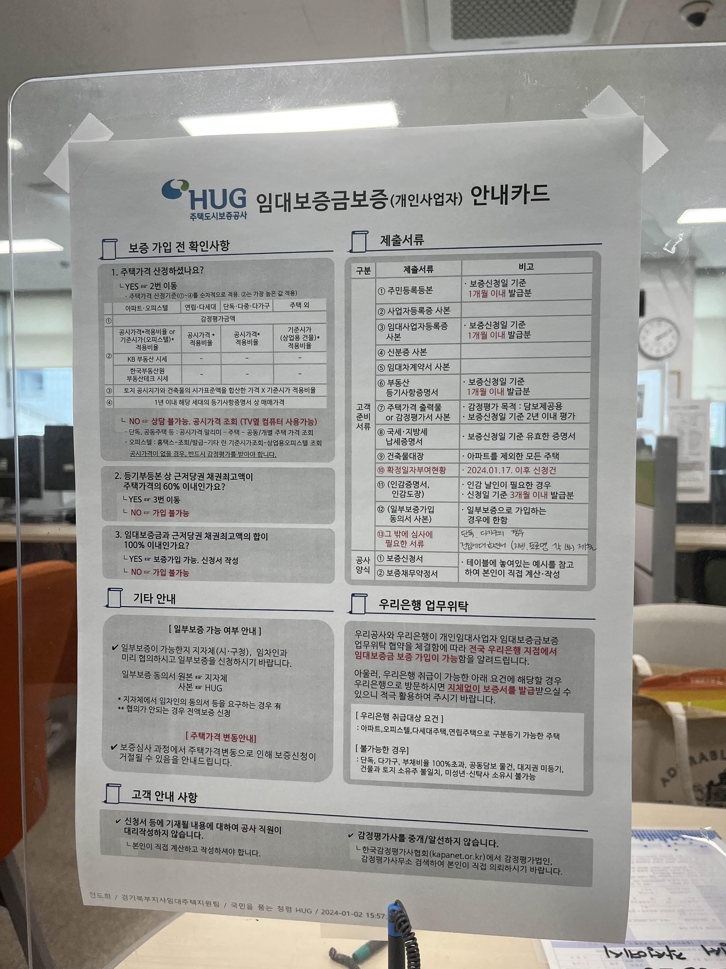 -> 보증가입이 가능하다. 신청서를 작성해야한다.
