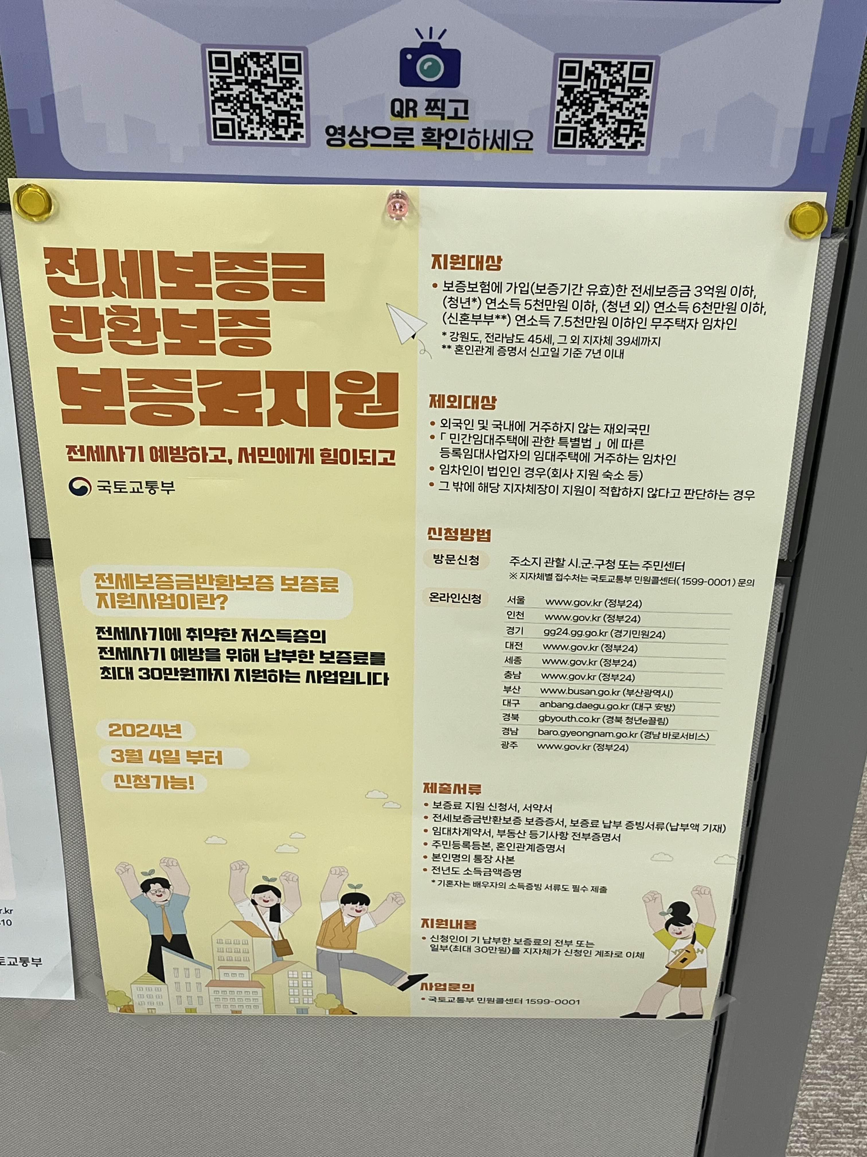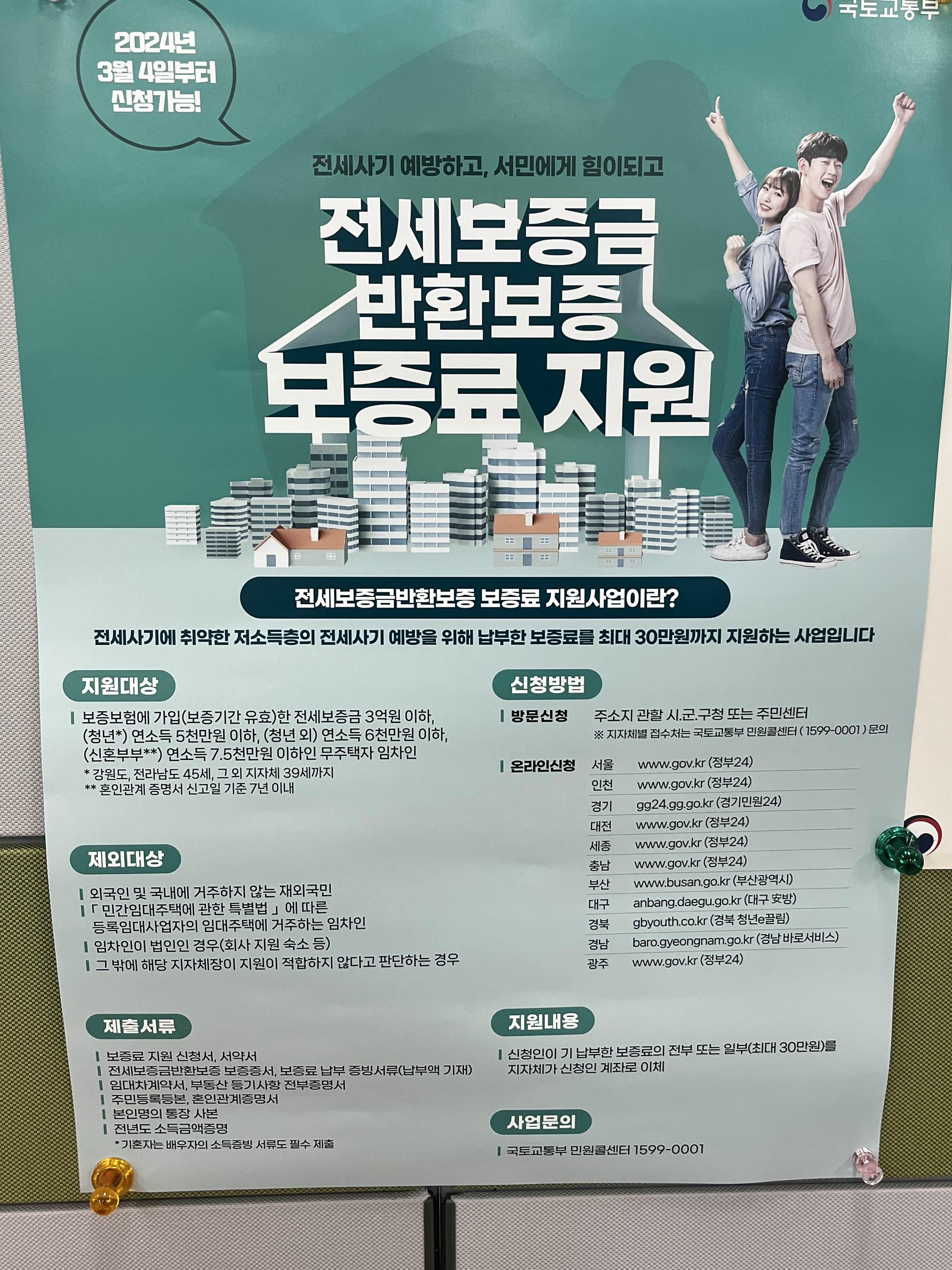 전세보증금 반환보증 보증료 지원사업도 하고있었다.