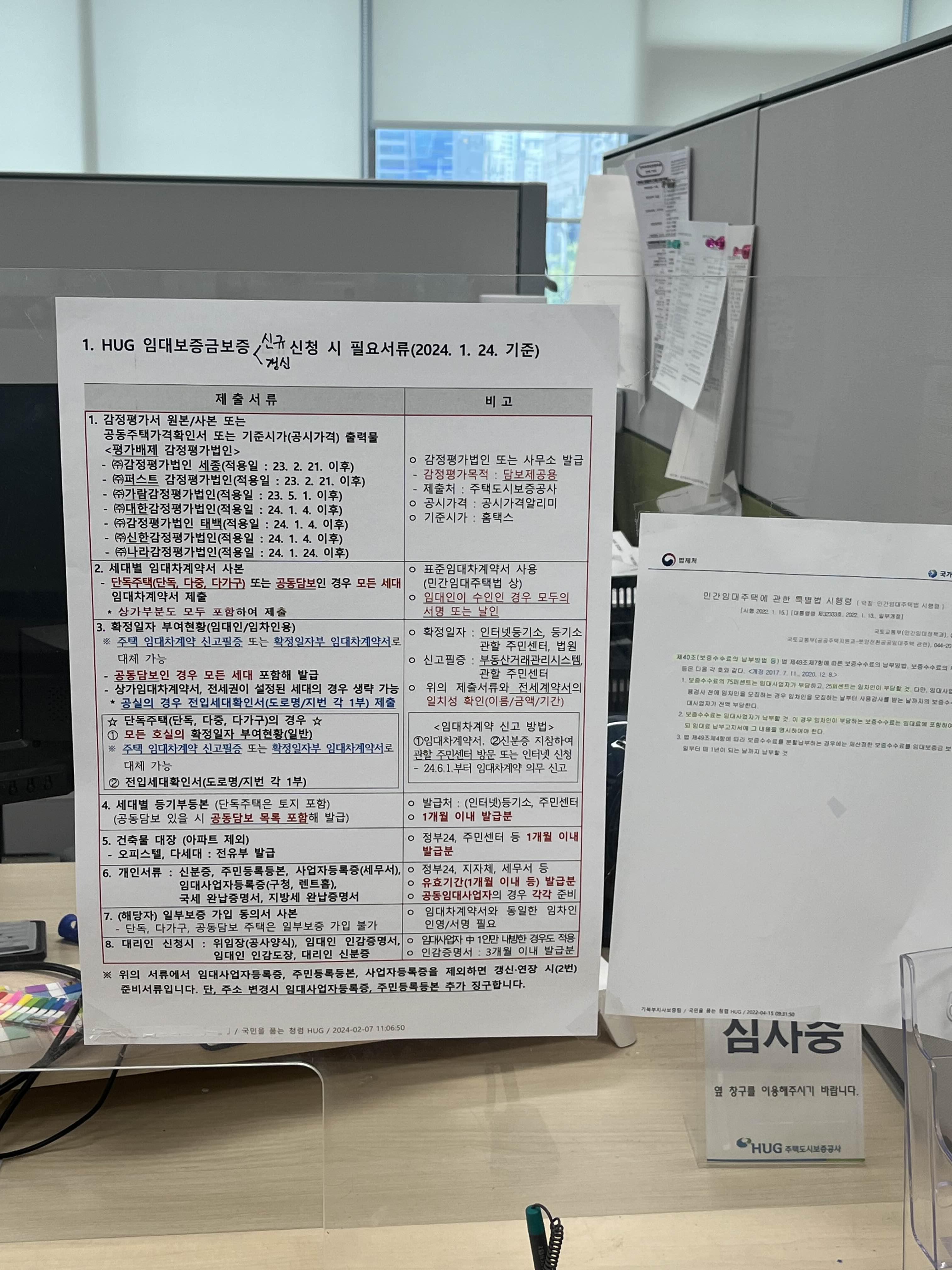 - 국세지방세 납세증명서 -> 보증신청일 기준 유효한 증명서